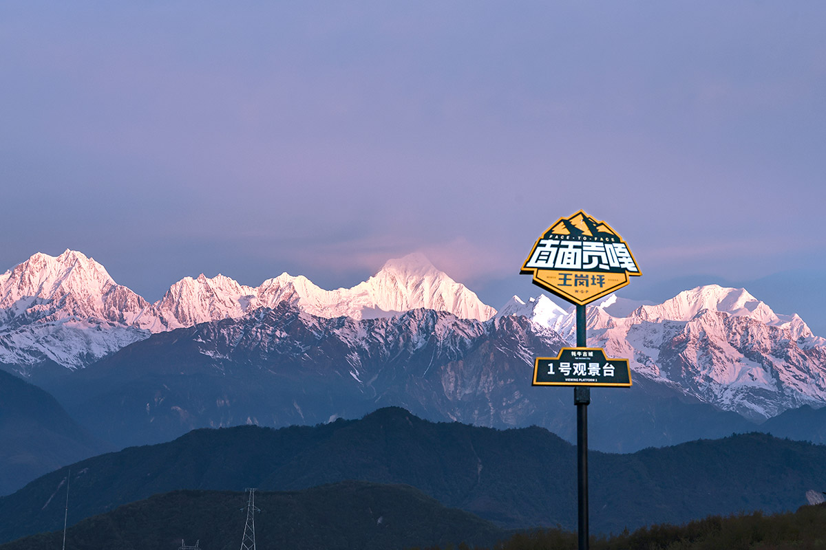 【王崗坪景區】景區與貢嘎山主峰直線距離約30km,是距離貢嘎山最近的的天然觀景點之一,也是距離大都市最近的可觀海拔5000米以上200多座雪山群峰的觀景地。貢嘎山是大雪山山脈的山脈名稱,木雅貢嘎被稱為主峰,“貢嘎”為藏語“雪白”之意。四川省第一高峰,海拔7,508公尺,也是終年不融雪的雪山,那山脈遼闊又雪白的山體,又稱之為蜀山之王。