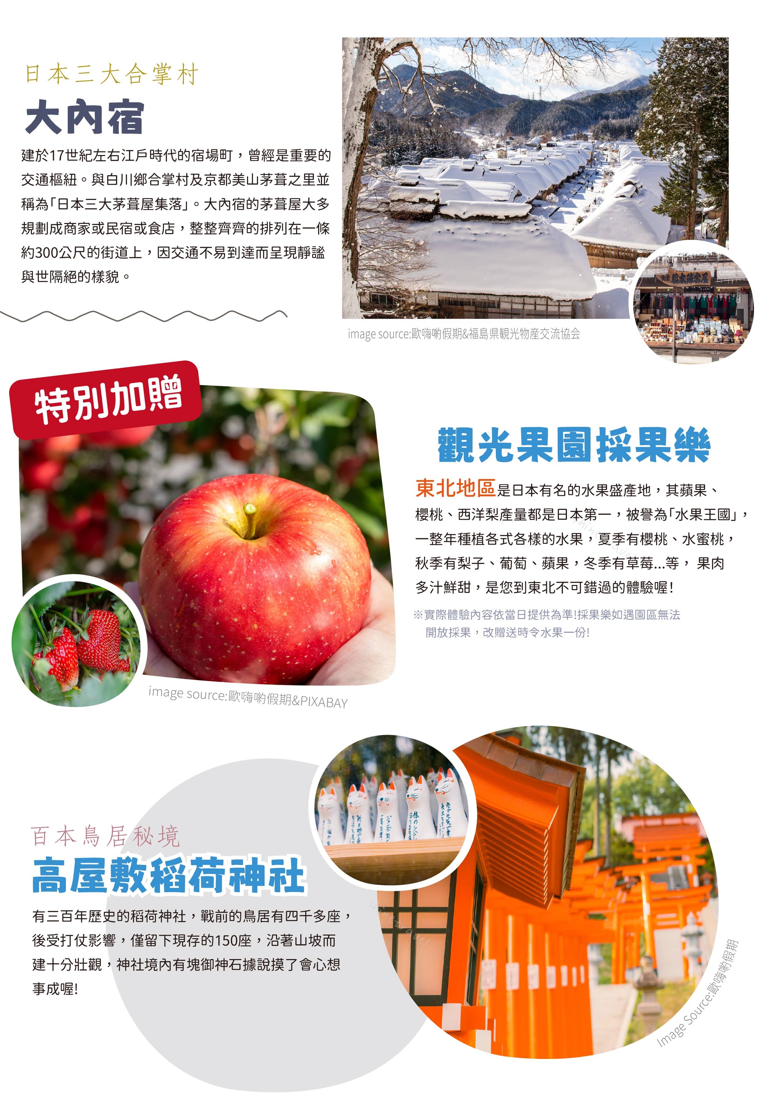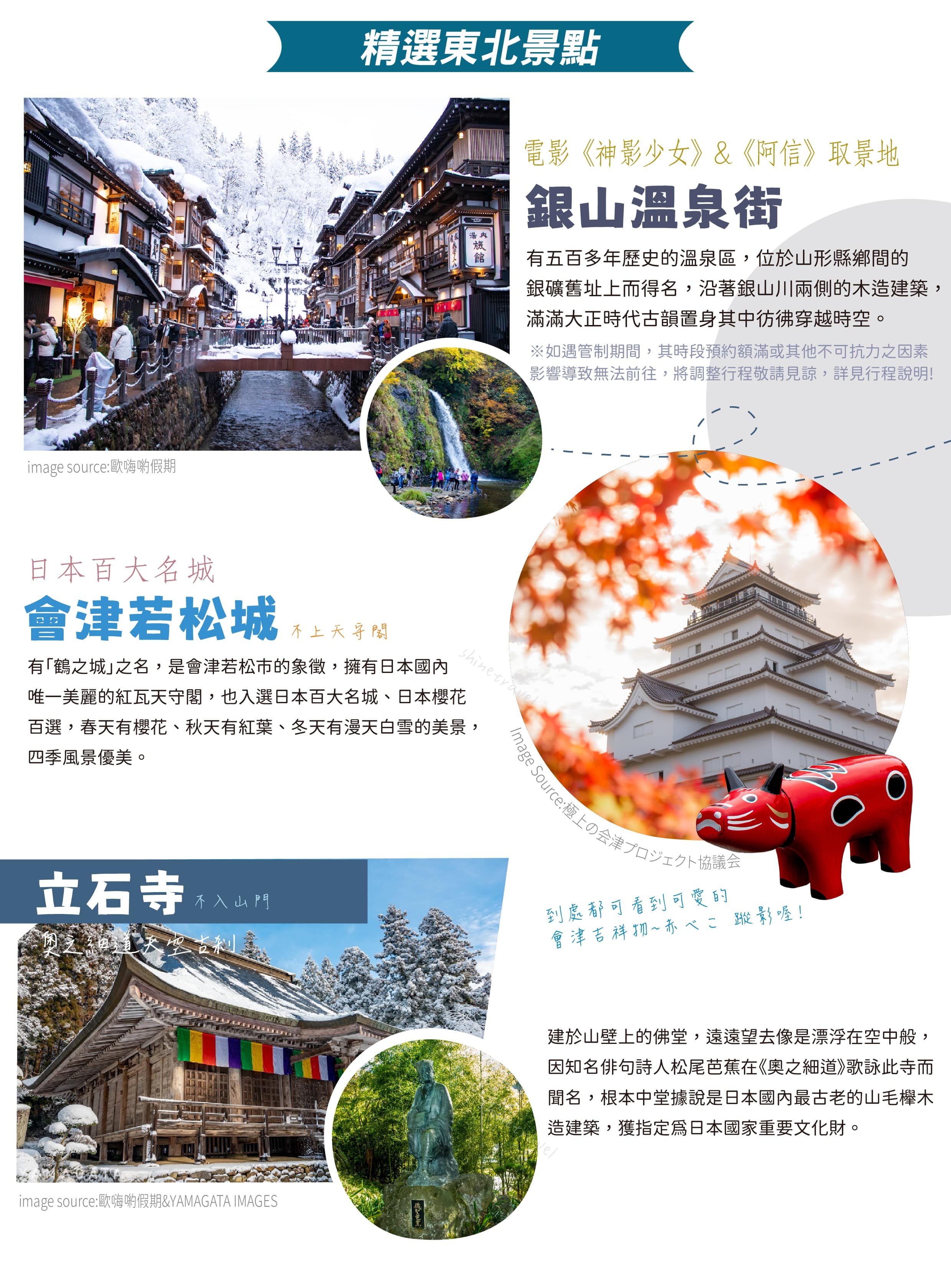 沐雪楓泉日本東北~大內宿.立石寺.銀山溫泉街.會津若松城.金蛇水神社.雙酒莊.採果樂.雙溫泉4日【週二出發】