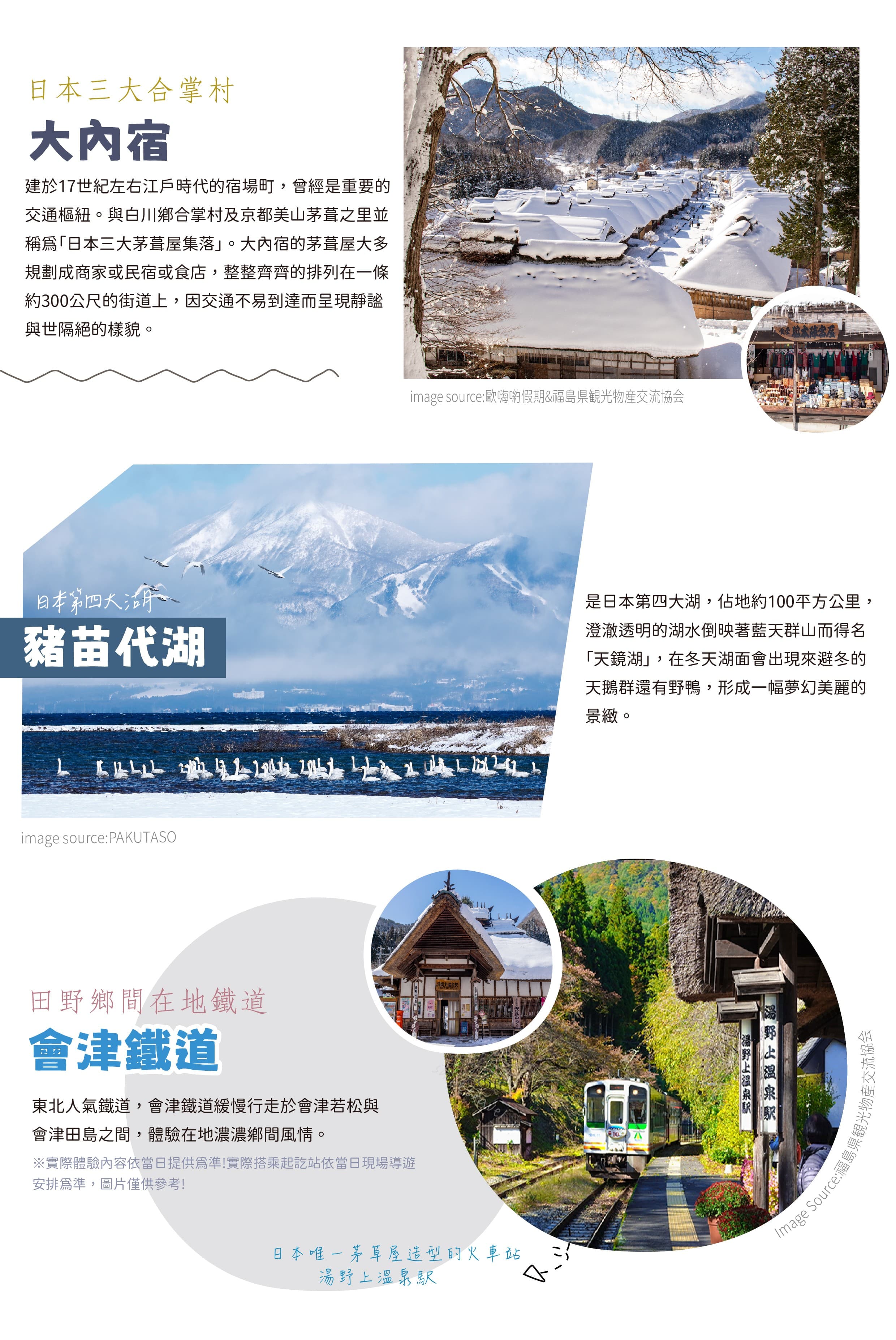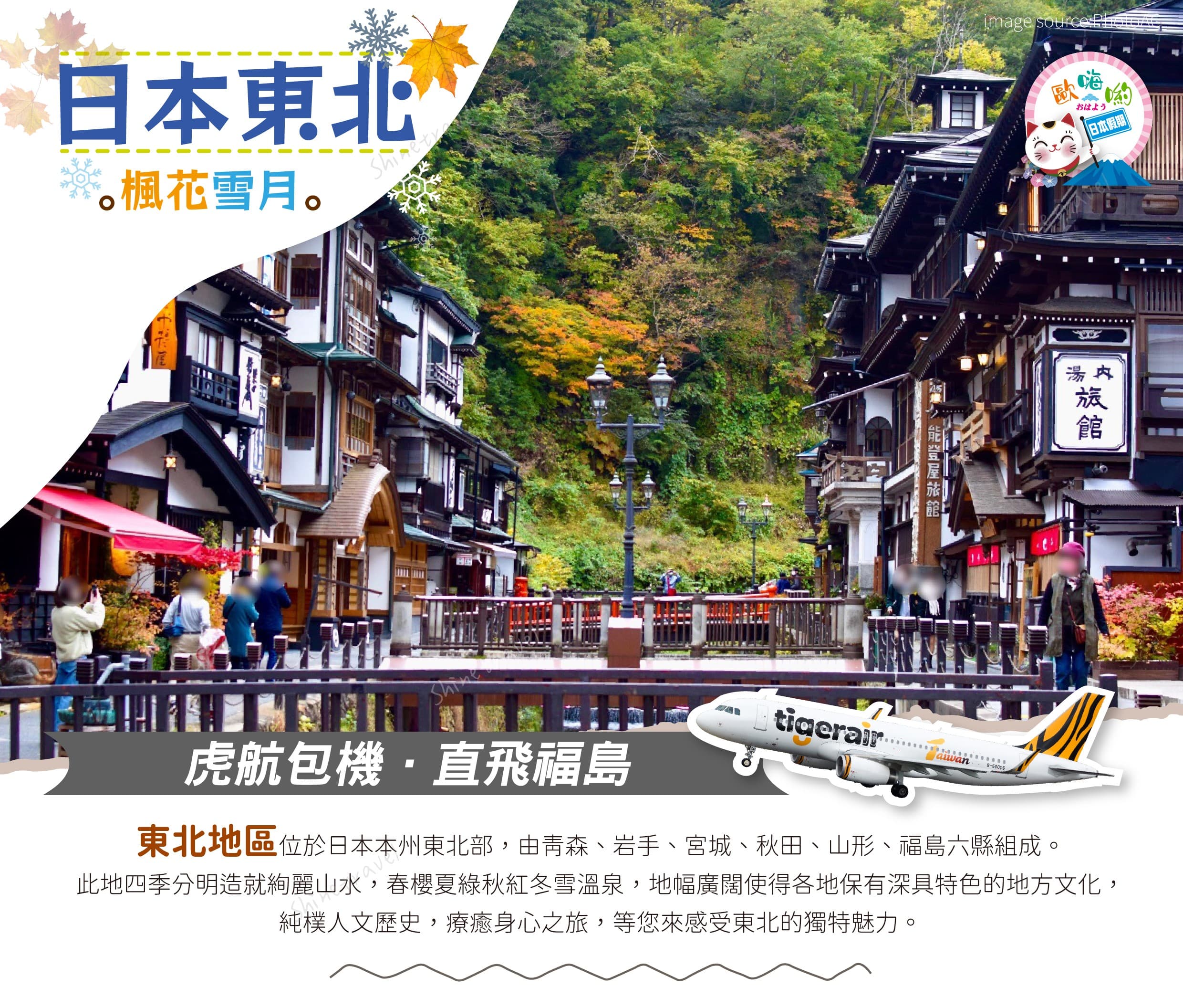 2.因銀山溫泉實施時段人數管制公告,實施期間為12月初至2026年3月底(詳見官網公告),如遇時段預約額滿或其他不可抗力因素之影響導致無法前往,將改前往奧州三大名湯~飯坂溫泉街散策,敬請見諒!