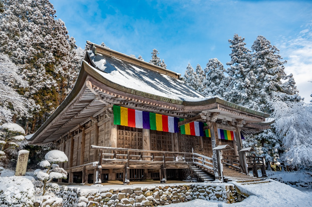 【立石寺】由比叡山延曆寺高僧~慈覺大師所建,開山已超過1100年歷史。山寺的根本中堂內,除了供奉傳說由慈覺大師親手刻製的木造藥師如來坐像外,還藏有一個更重要的寶物天台宗的不滅法燈,當時最澄法師將比叡山延暦寺的不滅法燈分與山寺供奉。