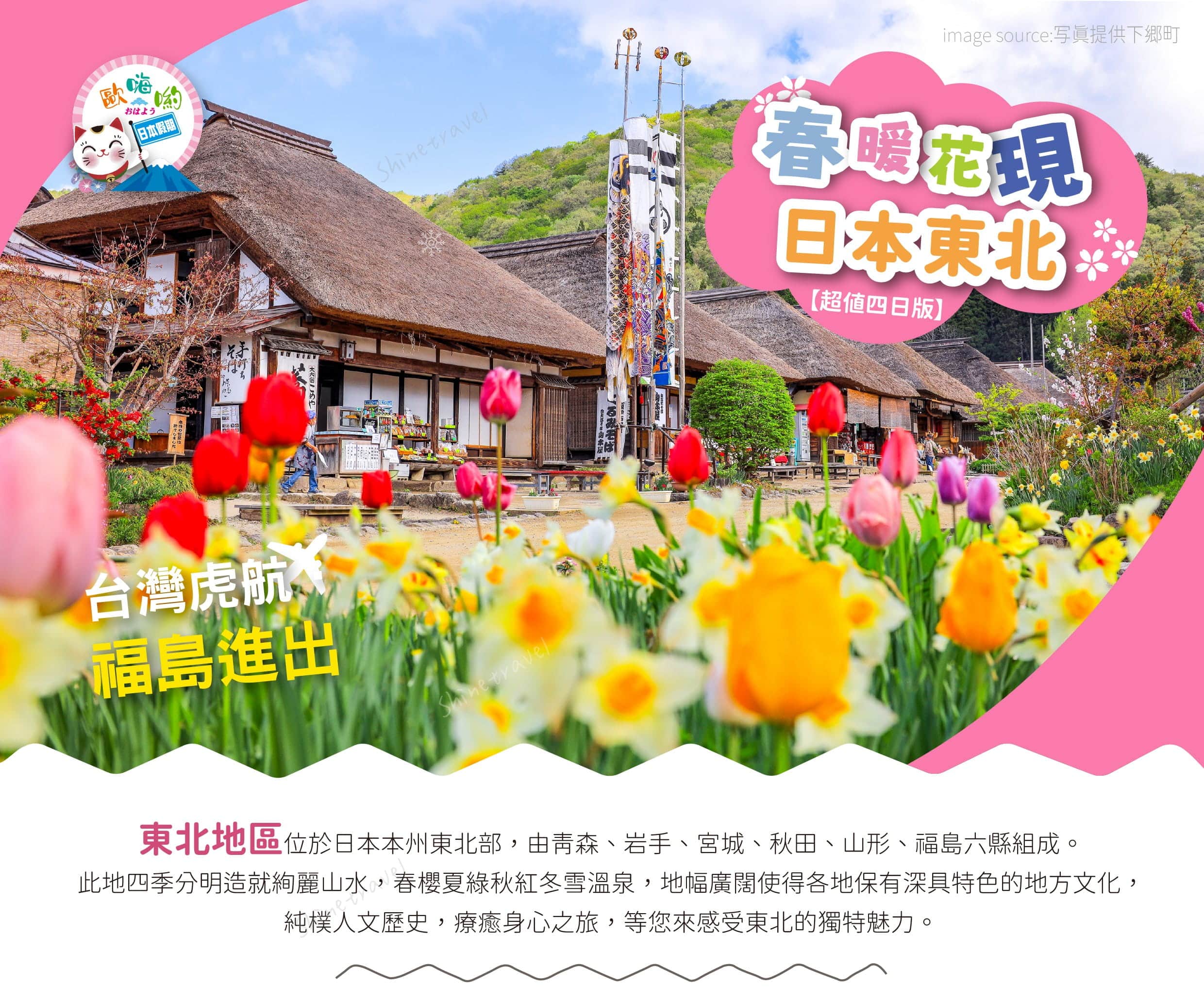 歐嗨喲假期.春暖花現日本東北~大內宿.末廣酒造.金蛇水神社.松島灣.會津若松城.豬苗代湖.雙溫泉超值4日【週二出發】