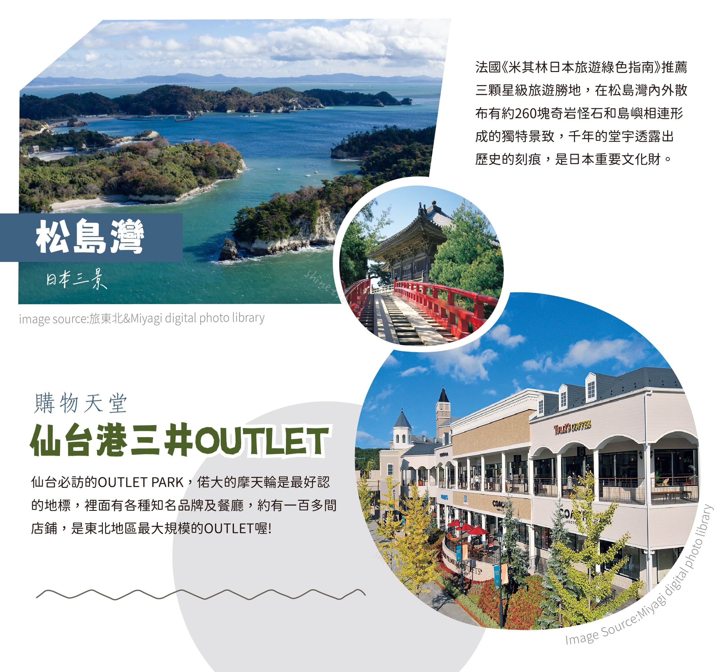 【仙台港三井OUTLET PARK】位於宮城縣近郊,仙台市與松島之間,諾大摩天輪是最好認的地標,不僅擁有120間店舖,三井outlet更是積極迎向外國人喜好,大舉推出各種精品店免稅服務。這裡也有許多餐廳,各種東北經典美食如牛舌等都吃得到喔!
