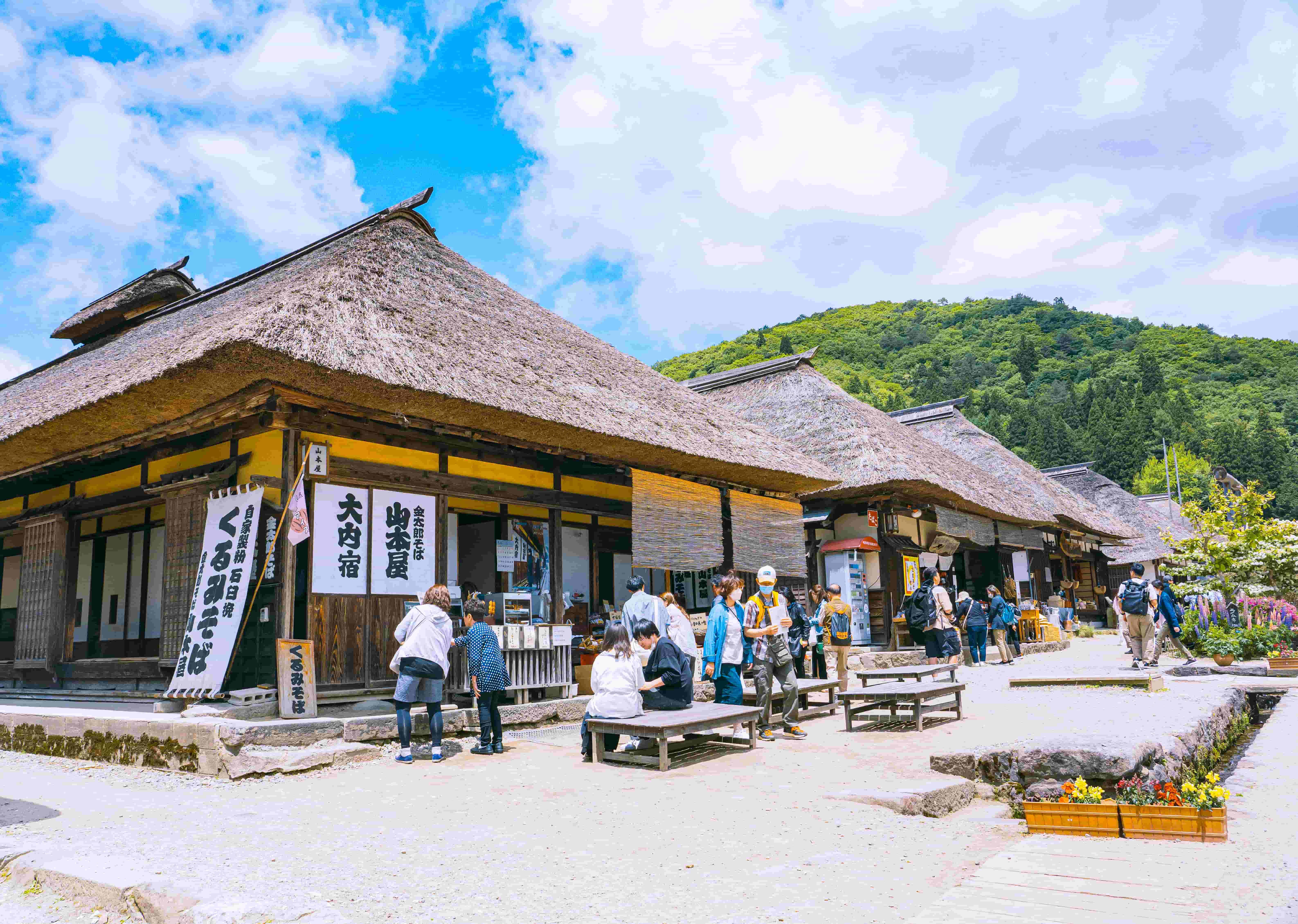 【大內宿】與岐阜縣白川郷合掌村及京都府美山茅葺之里並稱為「日本三大茅葺屋集落」。茅葺屋就是在日本常見的茅草屋,最大的特色就是屋頂採斜面設計,再覆蓋著厚實的茅草。大內宿的茅葺屋多規劃成商家或民宿,整整齊齊排列在一條約300公尺的街道上。