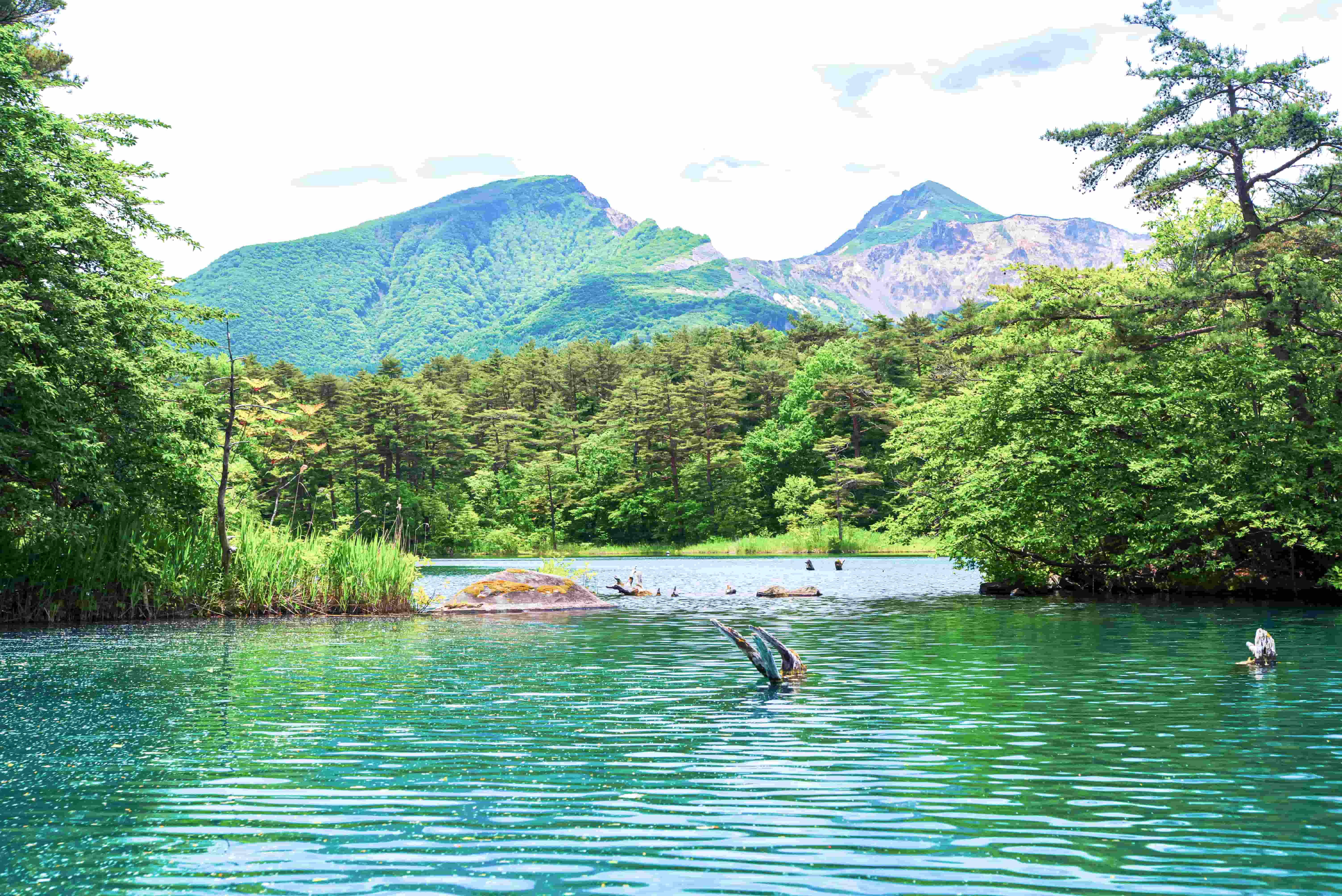 【五色沼】是坐落於磐梯高原,好幾個水面顏色不同的湖泊總稱。由於從地底湧出的礦泉含有鐵、錳等大量礦物質,湖中的湧泉又使水的濃度産生變化,生長於沼底的水草和豐富的浮游生物,加上日光晝夜四季交替的因素,呈現出翠綠、湛藍、深紫、咖啡等各種神秘色彩,鮮豔的色彩令人陶醉。