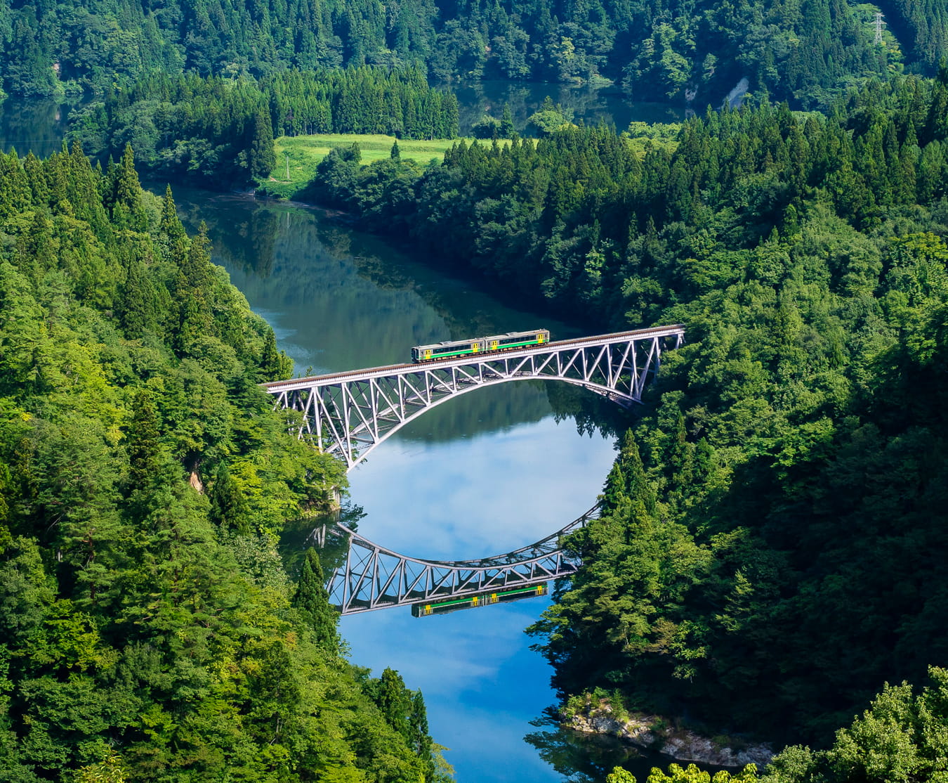 【只見線】是JR東日本位於東北地區的一條鐵道路線,連結會津若松市的會津若松站到新潟縣魚沼市的小出站,全線距離135.2公里。雖然使用人數不多,因為沿線多為只見川的沿岸村莊,而被日本經濟新聞票選為紅葉之全鐵道路線十大的第一名。