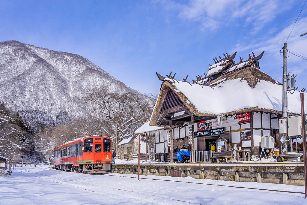 【會津鐵道】會津鐵道緩慢行走於會津若松與會津田島之間,在名勝景點處還提供暫時停車以供欣賞的服務。美景接二連三,還有各種驚喜出現,保證絕無冷場。沿途更有大內宿及塔崖等人氣觀光景點,體驗在地濃濃鄉間風情。