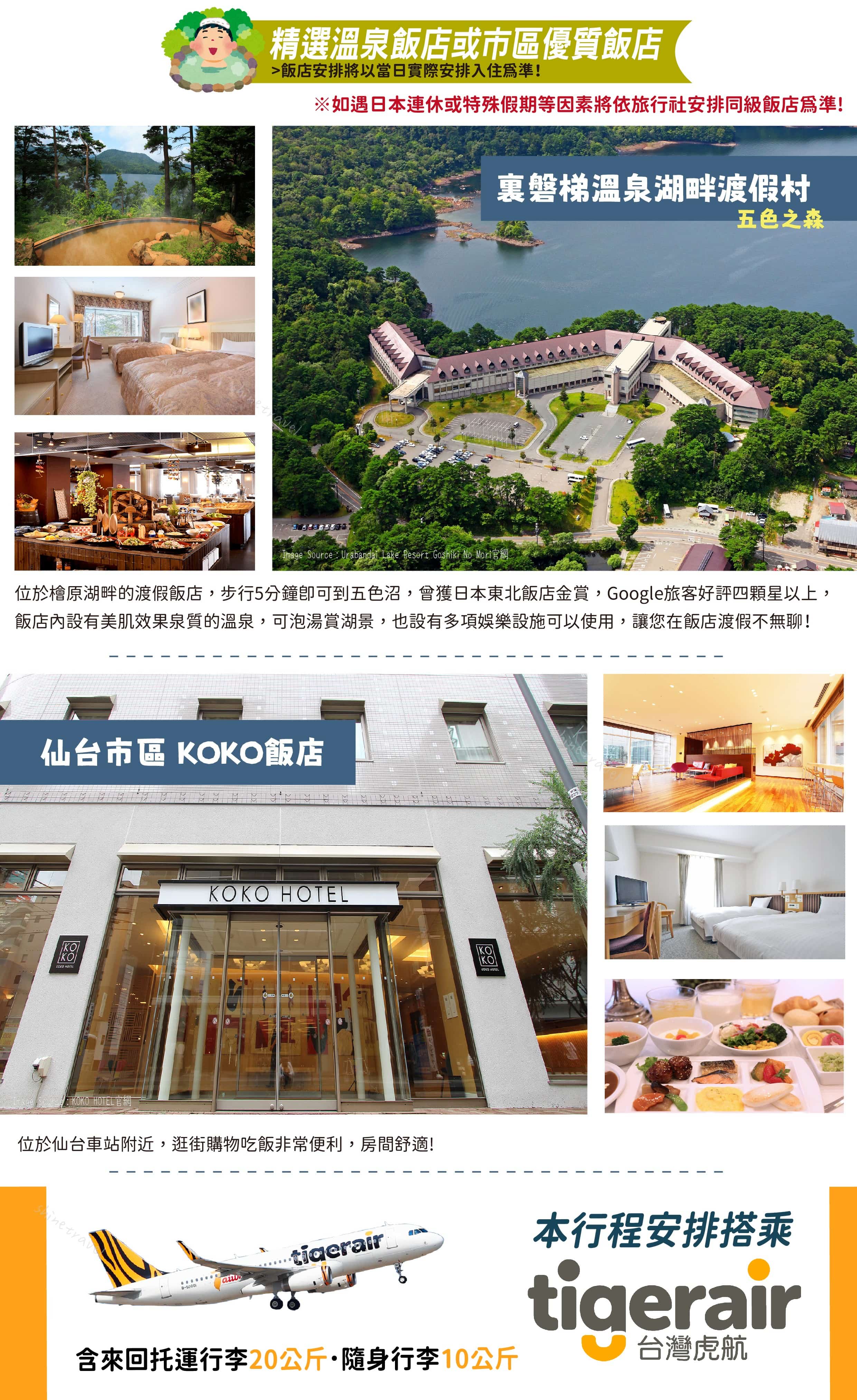 裏磐梯溫泉湖畔渡假村五色之森 或豬苗代溫泉利時達飯店 或裏磐梯美居溫泉度假飯店 或同級