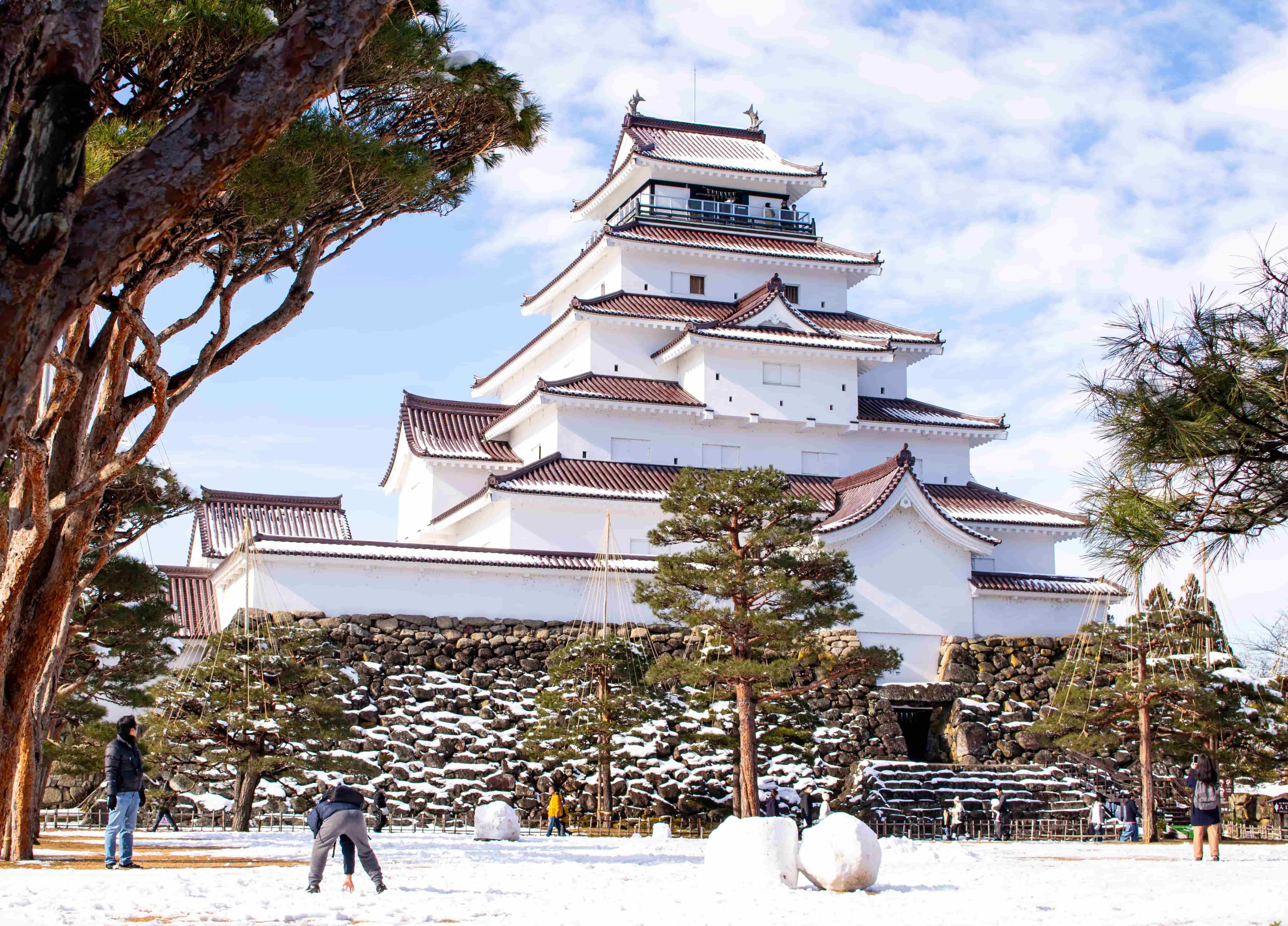 【會津若松城】又名「鶴城」,於1965年多次重建,2011年天守閣紅色瓦頂,重現了當年雄偉英姿。鶴城除了是日本百大名城之外,還被選為日本櫻花百選之一的神聖景點,春天有櫻花、秋天有紅葉、冬天則是漫天白雪的美景,不管什麼時候來都非常適合!
