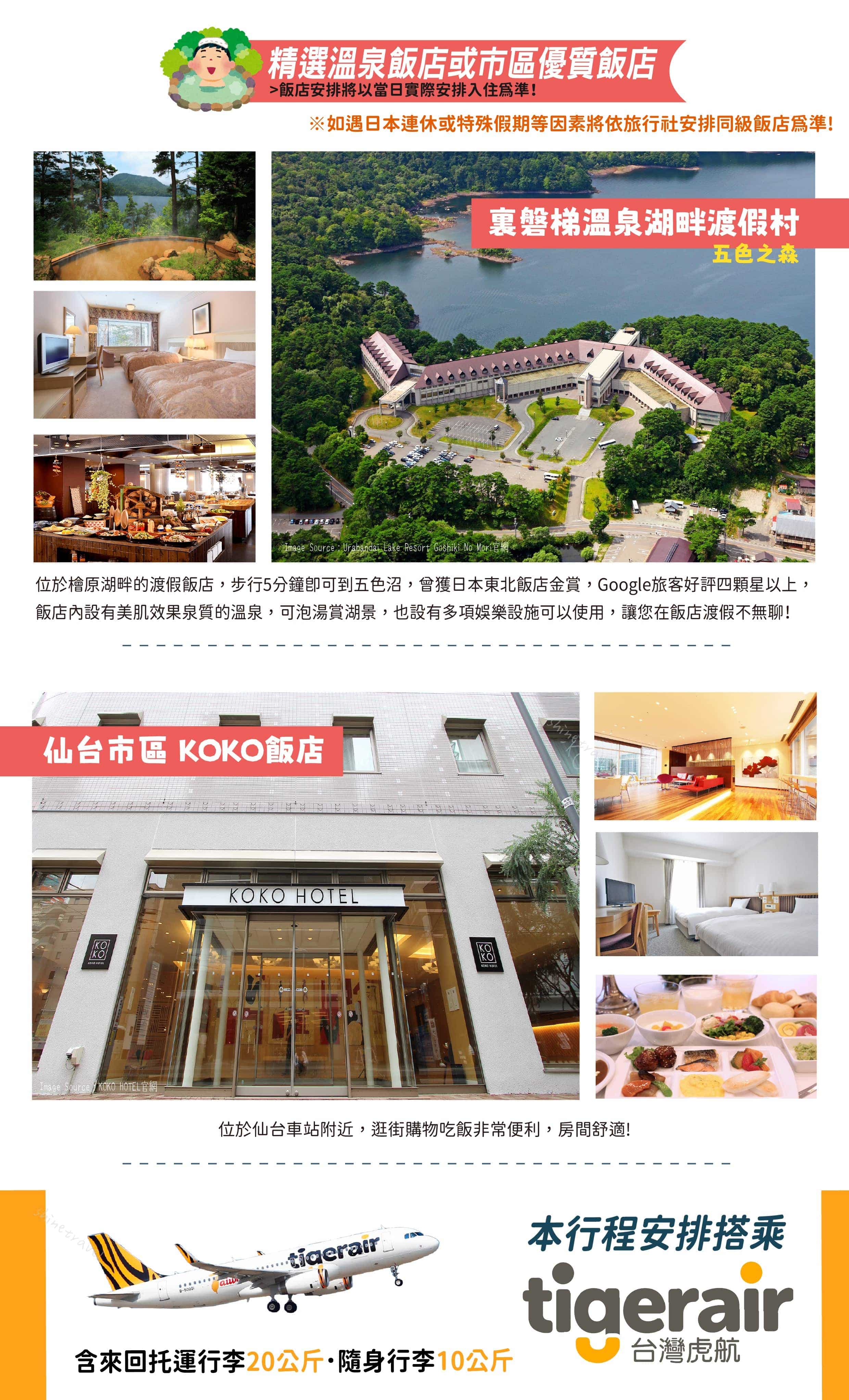 裏磐梯溫泉湖畔渡假村五色之森 或 豬苗代溫泉利時達飯店 或高湯溫泉花月高原飯店 或蘆之牧溫泉格蘭飯店 或東山溫泉大江戶溫泉物語格蘭飯店 或大鹽裏磐梯溫泉鹽姬之宿觀山飯店 或同級