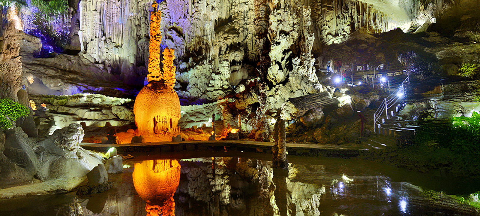 【織金洞】是一個多層次、多階段、多類別、多形態的完整岩溶係統,享有“中國溶洞之王”之譽。織金洞內冬暖夏涼,一年四季可遊。洞內溶洞連串,鐘乳石形態各異,為遊客呈現了不一樣的地質奇觀。