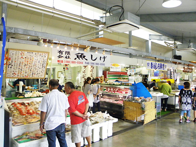 【系滿魚市場】來到沖繩想要吃新鮮又平價的海鮮,就直接到魚市吧!! 沖繩有泡瀨、泊港、系滿三大魚市場。系滿漁市場離那霸不遠,環境乾淨、附設用餐區、免費停車場,而且除了鮮魚、生食外,還有烤龍蝦、串燒、天婦羅、現煮海鮮湯、飯糰等熟食,非常適合親子用餐。