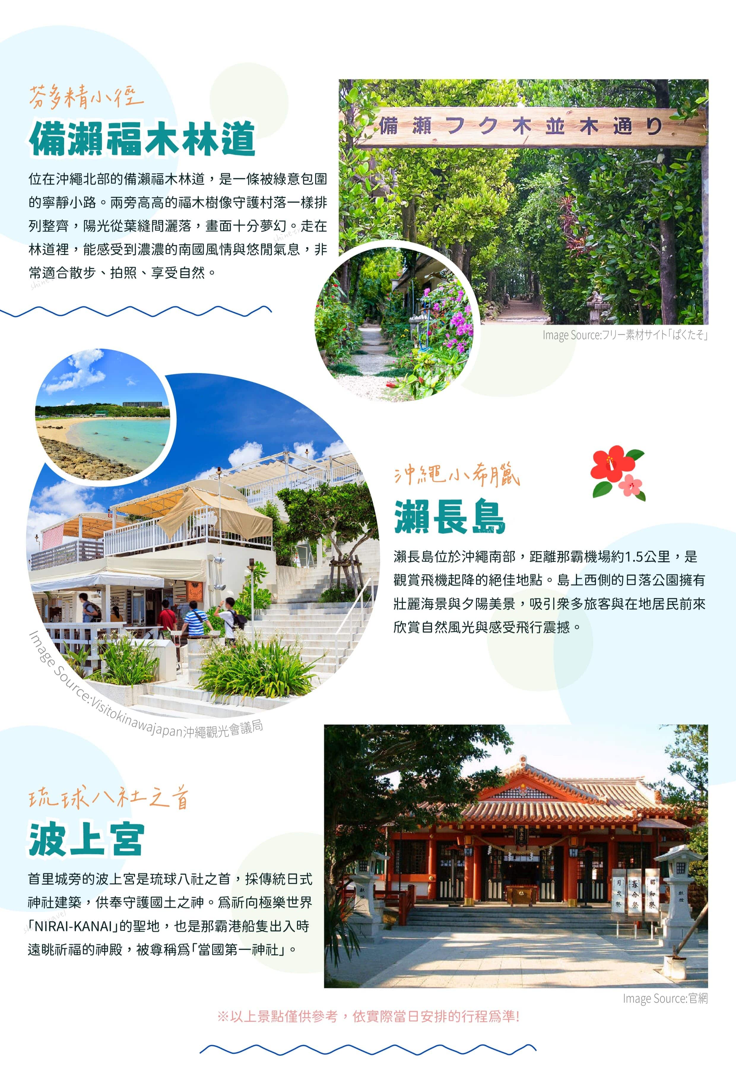 今日至機場集合,搭乘豪華噴射客機前往日本【沖繩】,沖繩縣又稱為「琉球群島」,是日本最西南側的一個縣,其縣廳為那霸市;全縣由160個島嶼組成,其中49個有人居住,面積約2,281平方公里,是日本唯一的亞熱帶縣。