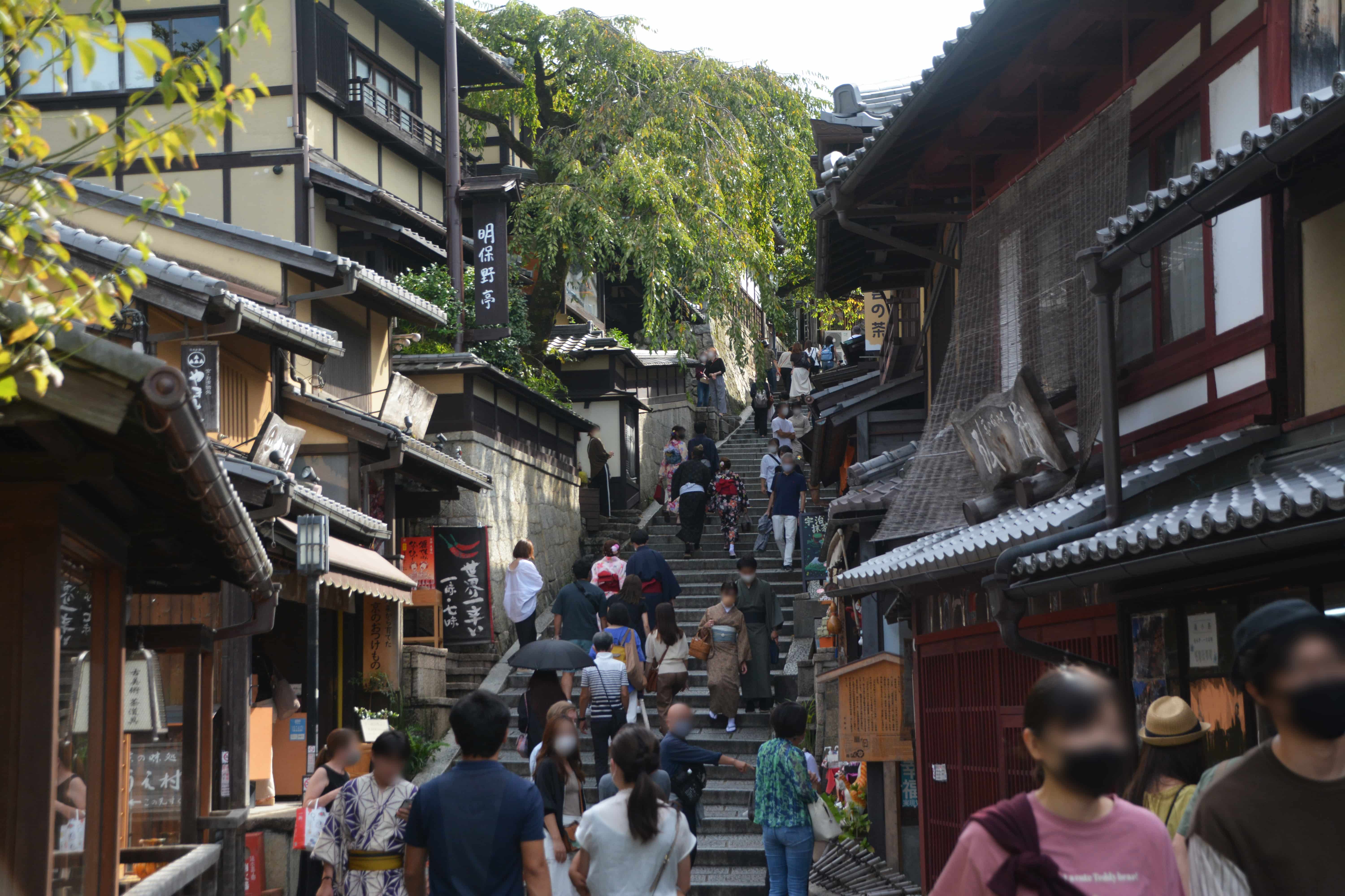 【產寧坂】產寧坂名稱的由來有許多的說法,如今大多數人的說法,是因該街通往祈求生產平安的「子安塔」,所以稱產寧坂。「產」意為生產、「寧」意指容易,據說在八世紀,聖武天皇及光明皇后在此祈求生產順利,在平安生下孝謙天皇後,於清水寺立下子安塔。從此,子安塔成為孕婦祈求順利生產的塔,民眾虔信不疑,也有一說指上田村麻呂於808年(日本大同3年)開闢的街道。