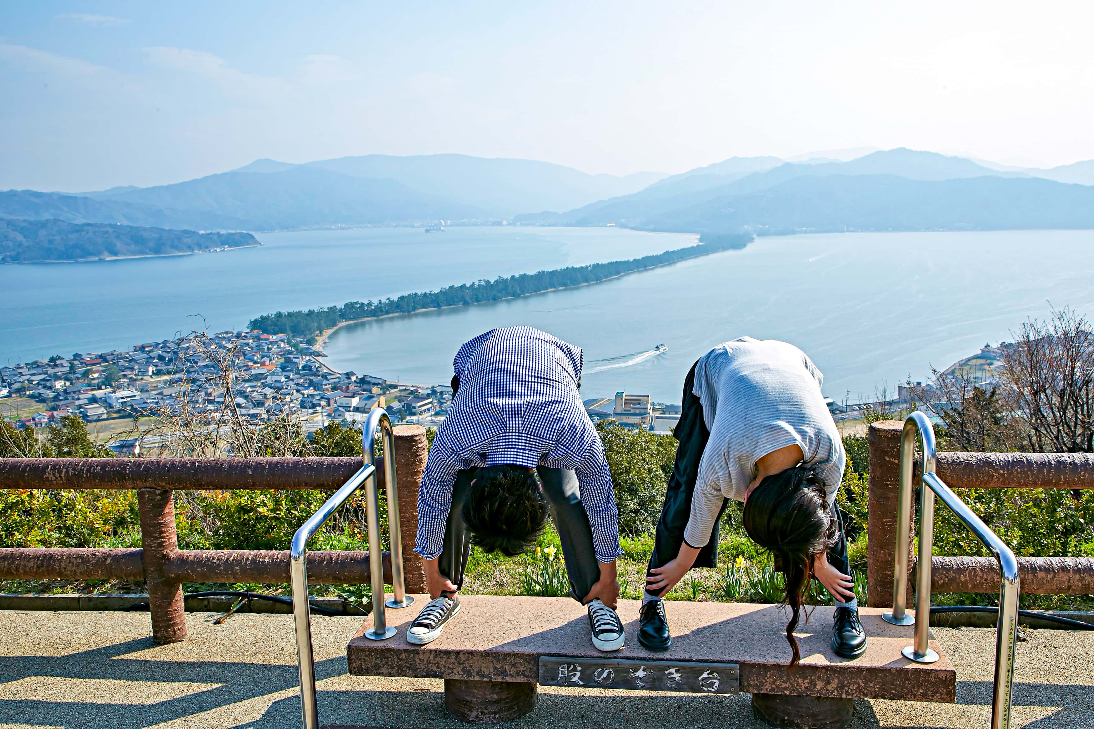 【天橋立】是一座大自然造就的天然橋,為日本三景之一。據日本神話記載,男神伊邪那岐為見女神伊邪那美,從天上到她的住處搭建了這座「橋樑」。是以日本海和大江山為源頭的野田川造就的天然藝術品,其神秘之美搭配上白色沙灘與濃綠松樹,可謂是天下絕景。在長約3.6公里的沙灘上,有著8,000多棵松樹形成的林蔭。