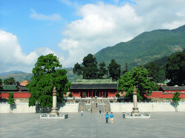 【報國寺】建於明朝萬曆年間,原名「會宗堂」,清代康熙時期皇帝親書《報國寺》匾額而易名,峨眉山第一大寺,是峨眉山進山的門戶,寺中有三件珍寶,一是七佛殿內的巨型瓷佛;二是7公尺的14層紫銅華嚴塔;三是高2.3公尺,重25噸的大銅鐘。