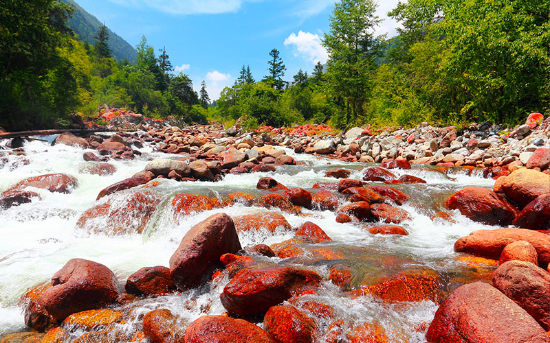 【九寨溝風景名勝區】首先前往則渣漥溝的長海,長海座落在則渣漥溝的盡頭,海拔3100多公尺,湖寬約600米,湖水最深處達百餘米,是九寨溝湖面最寬闊、湖水最深的海子,接著參觀在九寨溝眾海之中最小巧玲瓏,但色彩卻是最為斑斕的五彩池,沿途還有上、下季節海等高山湖泊等著你去探訪。午餐於景區內餐廳享用自助餐,餐後前往日則溝,日則溝風景線全長18公里,在諾日朗瀑布和原始森林之間,是九寨風景線中的精華的部分,溝內有原始森林、劍竹海、熊貓海、五花海、珍珠灘、珍珠灘瀑布等,其中珍珠灘瀑布猶如一面巨大晶瑩的珠簾,從陡峭的斷層垂掛而下;而五花海的底部景觀更是妙不可言,湖水一邊是翠綠色的,一邊是湖綠色的,湖底的枯樹,由於鈣化而變成一叢叢燦爛的珊瑚,五光十色,非常迷人。
