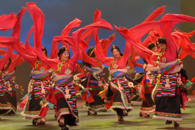 【藏羌歌舞秀】九寨溝藏羌風情歌舞晚會,是一台能完整地代表九寨溝民族風情、展示九寨溝旅遊文化的狂歡晚會,表演內容包括,藏族歌舞、藏族傳統活動表演、藏羌傳統服飾展示等,表演中,演員會與遊客有非常熱烈、歡快的互動,比如一起在舞臺上跳起歡樂的鍋莊,熱情的為演員獻上潔白的哈達等等。