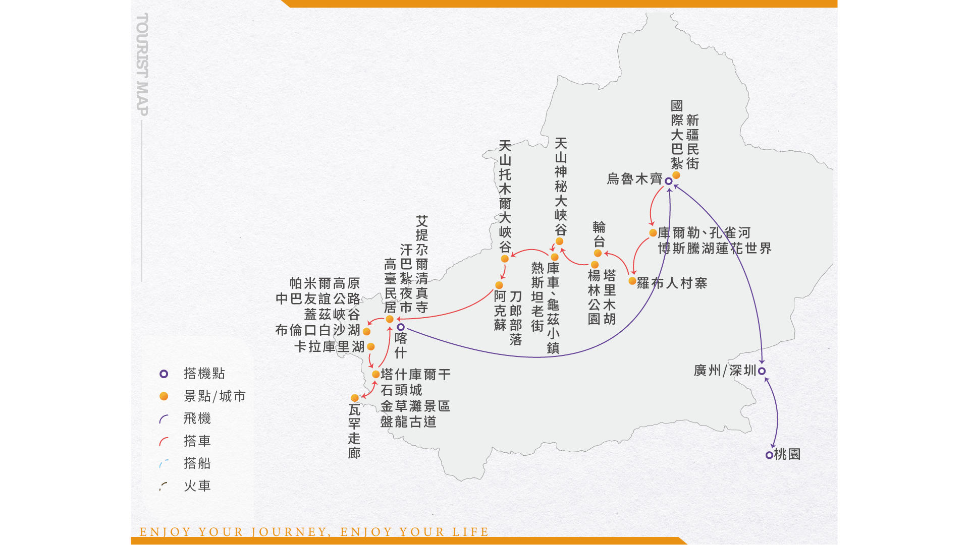 ※【溫馨提示】:新疆維吾爾族自治區和絲路的作息時間晚中原時間2小時(時區的關係),但全中國統一為一個中原標準時間,旅程中的作息時間貴賓們請依照導遊宣佈的時間進行。