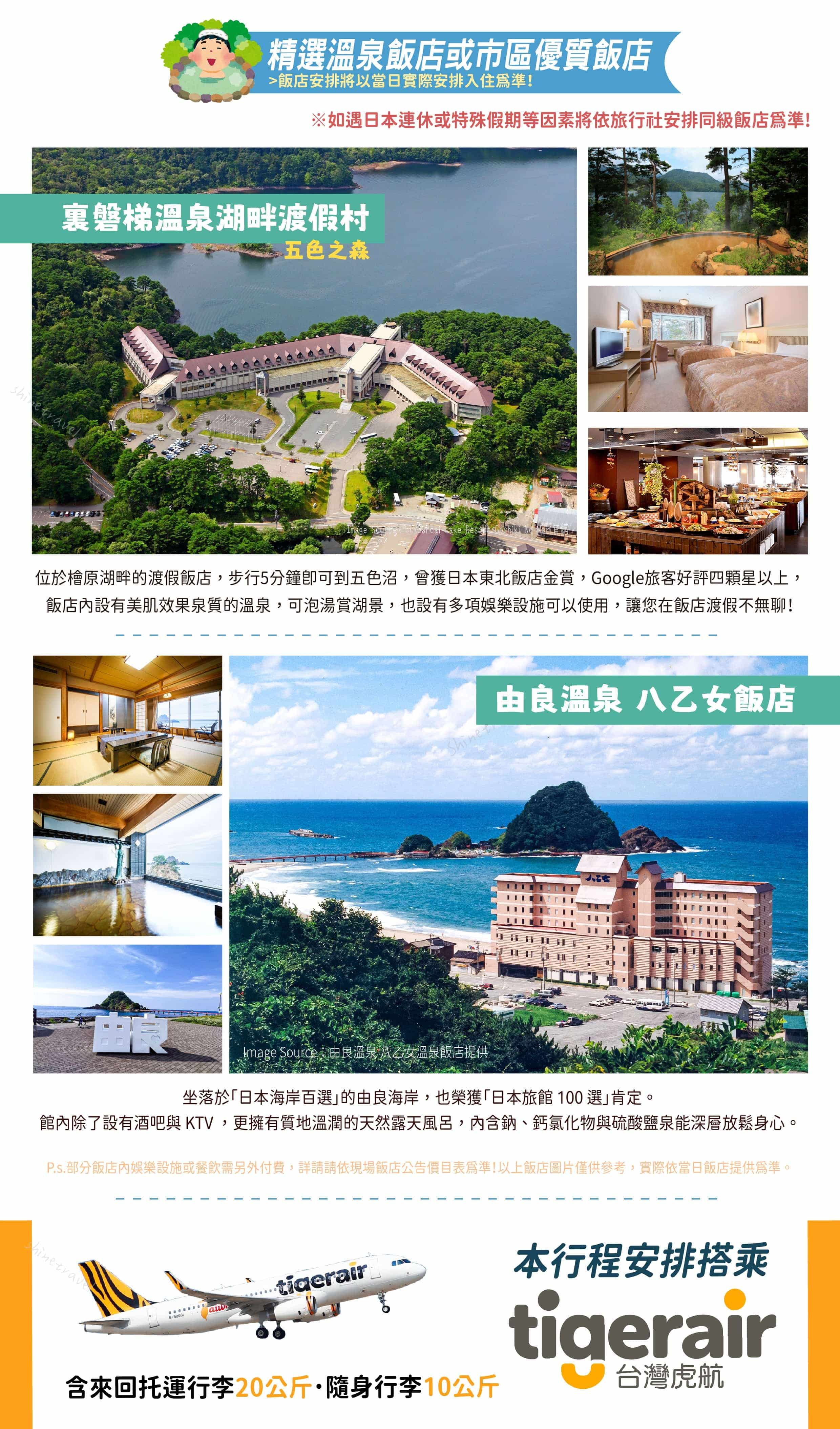 裏磐梯溫泉湖畔渡假村五色之森 或豬苗代溫泉利時達飯店 或高湯溫泉花月高原飯店 或蘆之牧溫泉格蘭飯店 或東山溫泉大江戶溫泉物語格蘭飯店 或大鹽裏磐梯溫泉鹽姬之宿觀山飯店 或同級